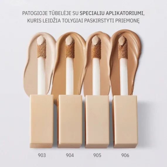 Maskuoklis patogioje tūbelėje su specialiai sukurtu aplikatoriumi, kuris leidžia greitai ir tolygiai paskirstyti priemonę – be trynimo į odą.
