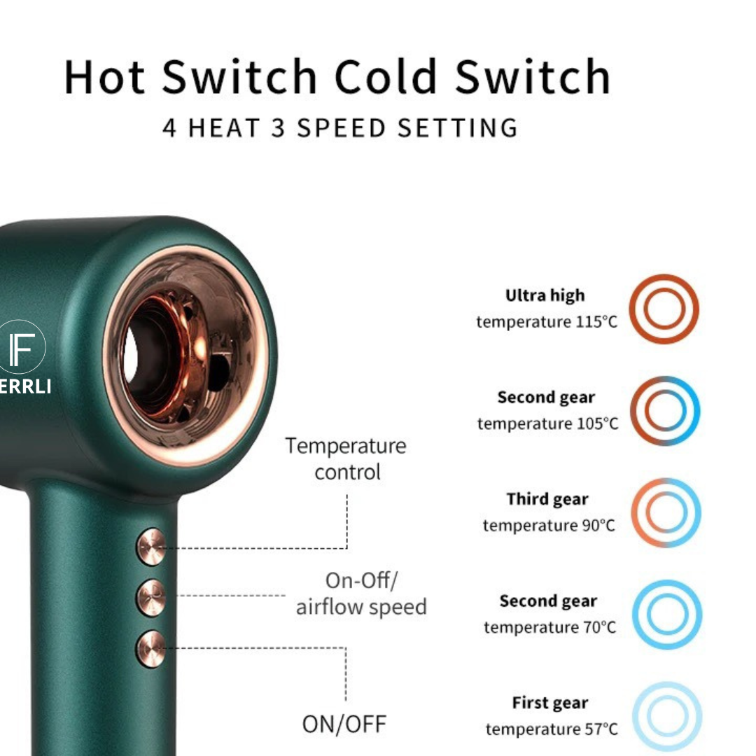 High speed airflow džiovintuvo technologija. Ferrli džiovintuvas turi tunelinę „airflow” technologiją. Kuri garantuoja itin greitą ir švelnų plaukų išdžiovinimą be karščio sukeliamos žalos plaukams.