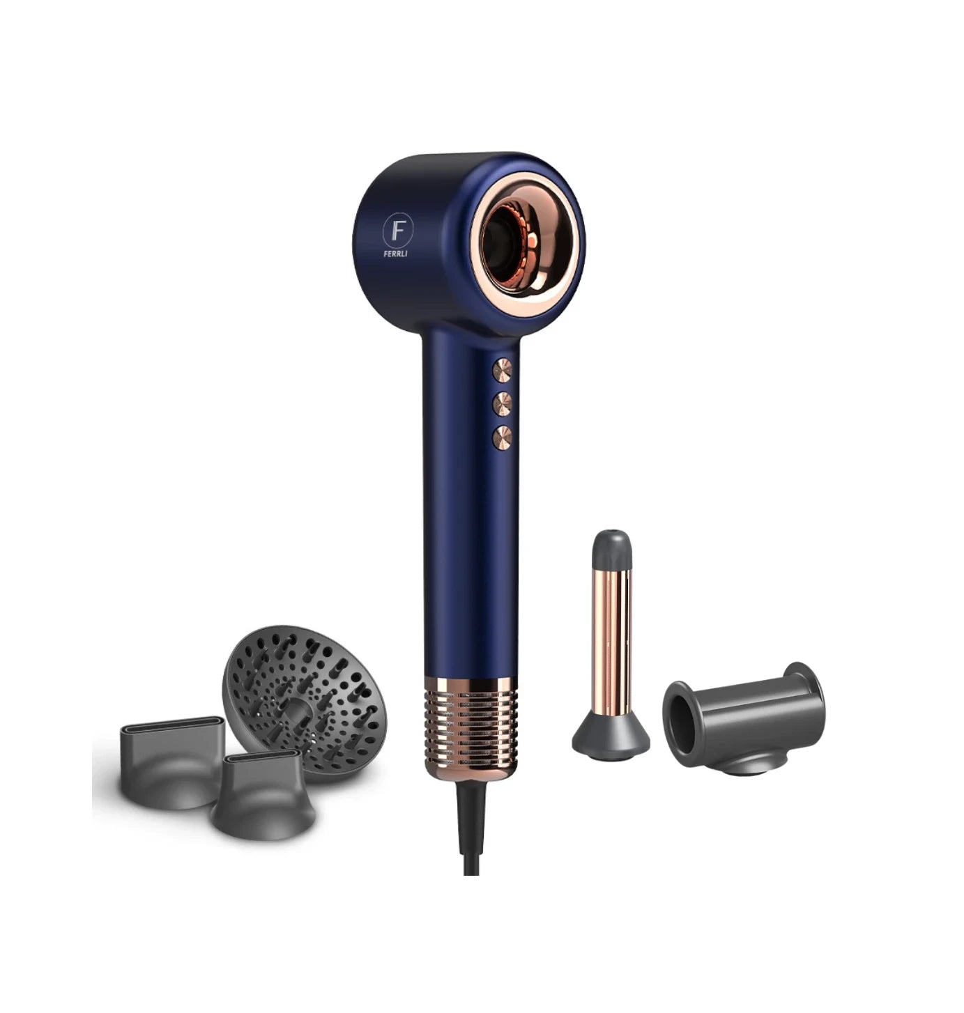 Skirtingi antgaliai šukuosenos formavimui. Su Ferrli džiovintuvu be karščio sukeliamos žalos puikiai išsidžiovinsite ir kartu susiformuosite šukuoseną. Skirtingi antgaliai leis pasiekti madingų garbanų ar itin glotnių plaukų šukuoseną.