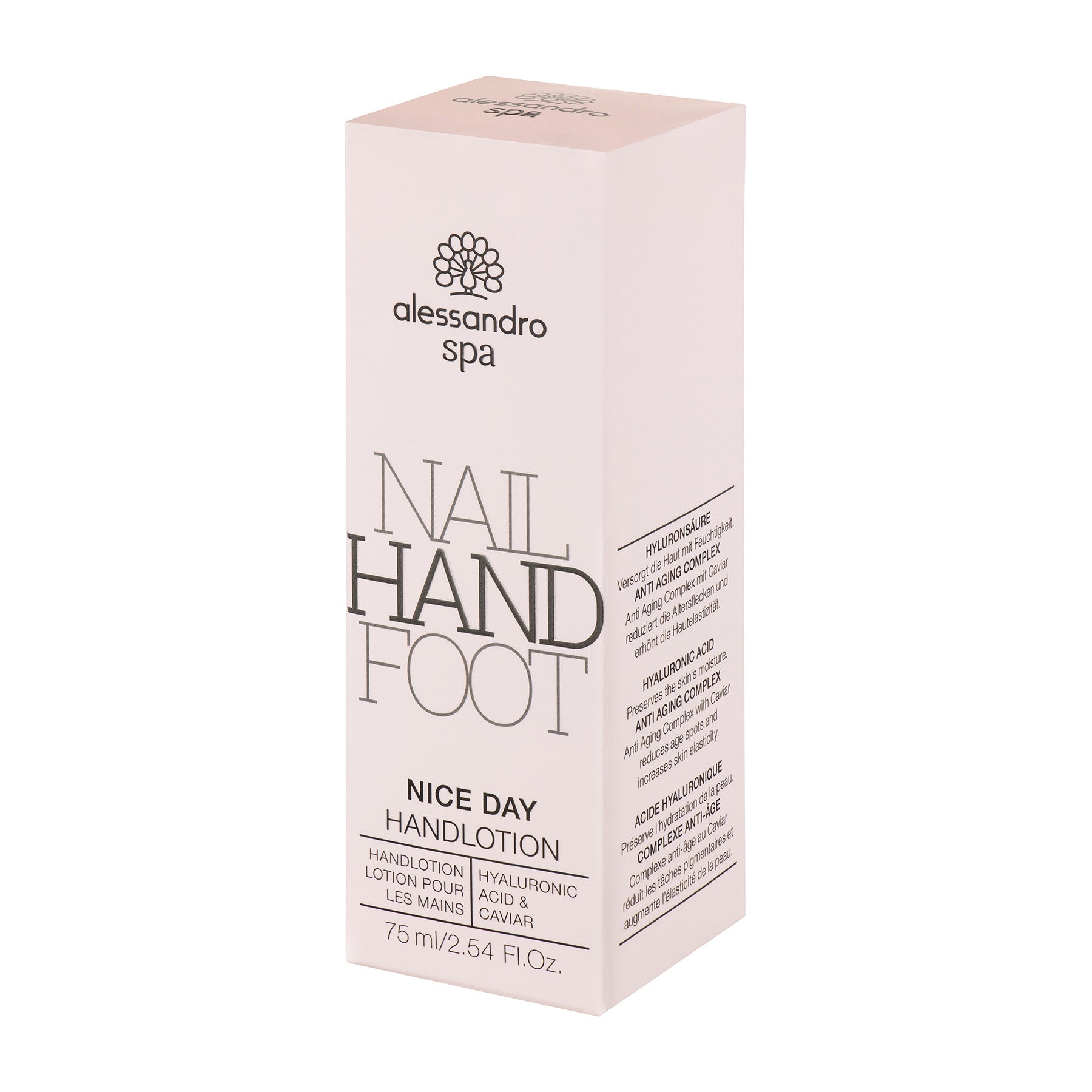 Nedidelį kiekį losjono paskirstykite ant rankų ir švelniai masažuokite nuo pirštų galiukų link riešo, kol visiškai susigers. Ypatingą dėmesį skirkite nagų odelėms. Idealiai dera su kitais alessandro spa produktais, ypač rekomenduojamas naudoti greta rankų kremo CREAM RICH ir apsauginio rankų serumo SILKY GLOVES.