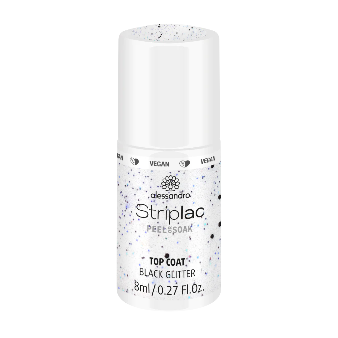 STRIPLAC TOP COAT BLACK GLITTER blizgus viršutinis sluoksnis su tamsiais blizgučiais